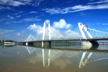 漢中龍崗大橋總長(zhǎng)713米,橋面寬40米,橋長(zhǎng)加引道有1000多米,主橋結(jié)構(gòu)為三塔...