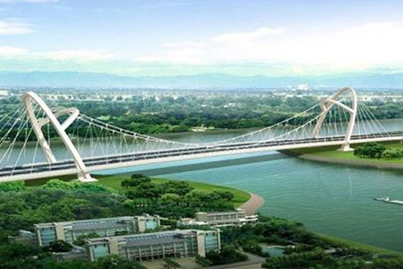 紅旗大橋橋梁總長(zhǎng)340.6米,大橋主跨152米,橋?qū)?6米,雙向4車(chē)道。...